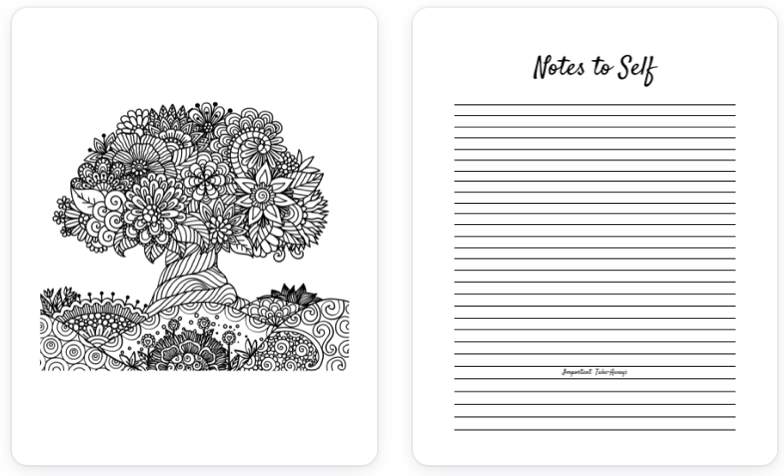 When you’re writing, you can pause to process by coloring, providing a moment of reflection and allowing for deeper processing of your thoughts. This integrated approach helps you to explore your feelings and thoughts more deeply and freely, leading to a more enriching journaling experience.